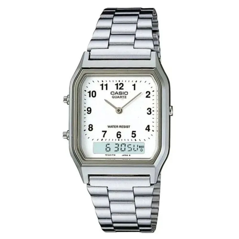 Relógio Casio Anadigi Vintage Branco Prata AQ-230A-7BMQ