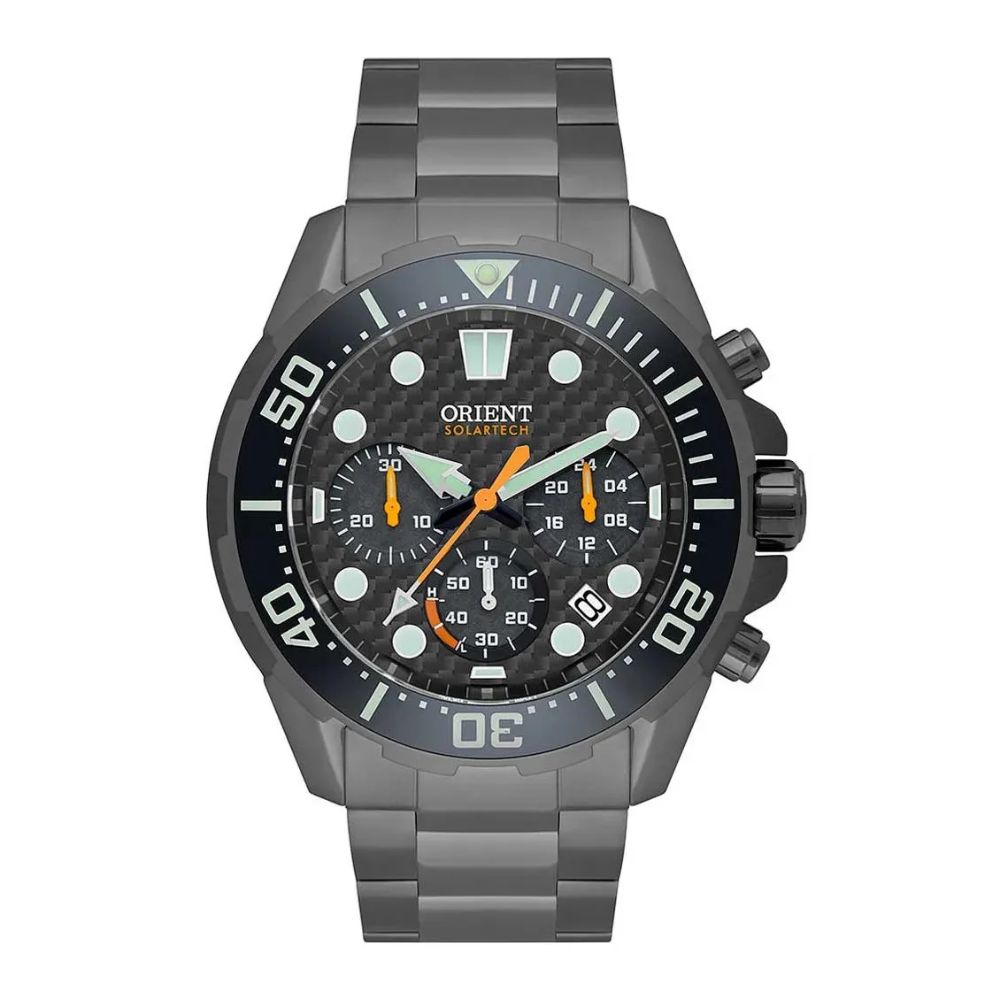 Informações adicionais: Ponteiros de hora e minutos com luminosidade, bisel em cerâmica com luminosidade, válvula de hélio